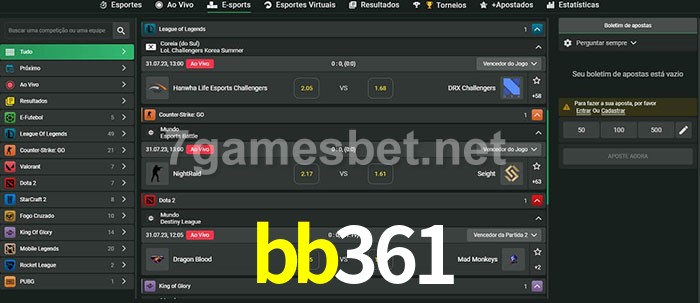 O bb361 oferece uma grande seleção de opções de apostas em e-sports com probabilidades competitivas